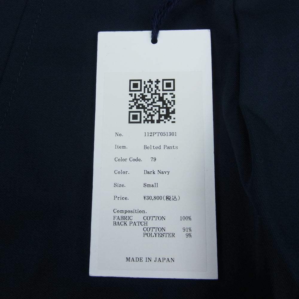 クオン 112PT051301 BELTED PANTS ベルテッド テーパード パンツ ネイビー系 S【新古品】【未使用】【中古】