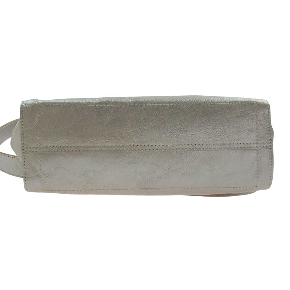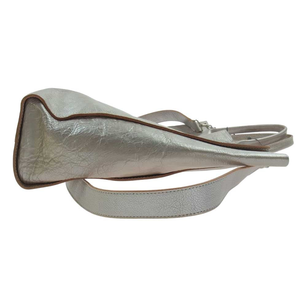 アナック オリジナルシルバーレザー タテ型 2WAY ショルダー トートバッグ シルバー系【極上美品】【中古】