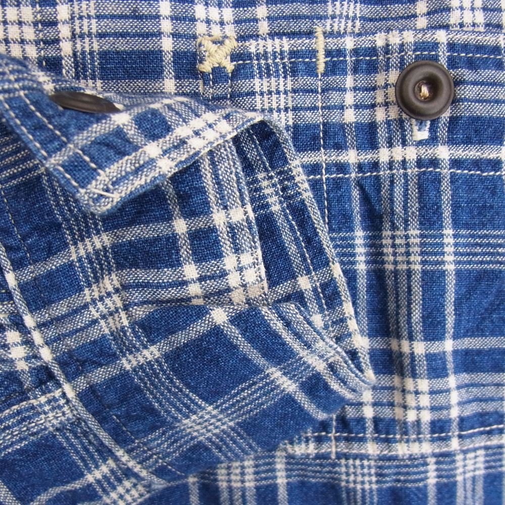 FREEWHEELERS フリーホイーラーズ The UNION SPECIAL OVERALLS ユニオンスペシャルオーバーオールズ 長袖 チェック シャツ マチ付 ネイビー系 14【中古】