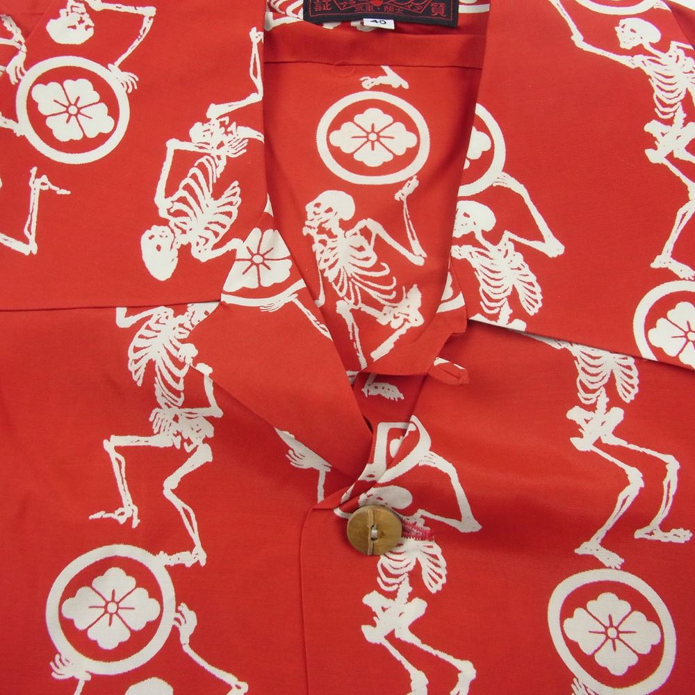 EVISU エヴィス 家紋 スカル ハワイアン アロハ 半袖 シャツ レッド系 40【中古】