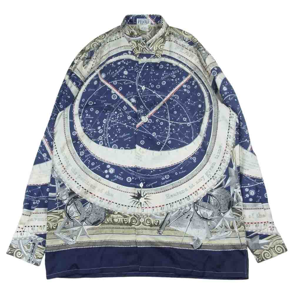 GIANFRANCO FERRE ジャンフランコ・フェレ イタリア製 シルク100% 長袖 シャツ マルチカラー系 15.5【中古】