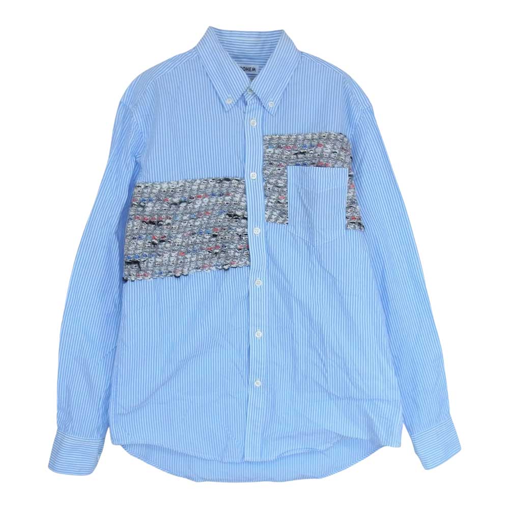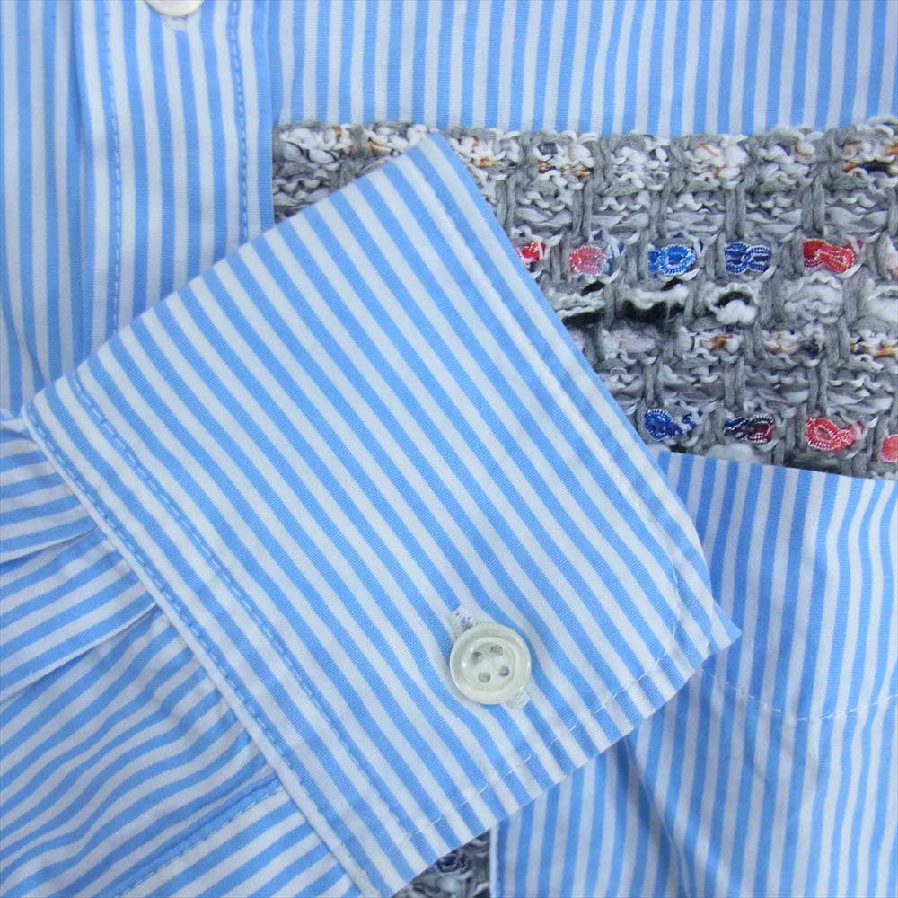コーヘン 20-181-012 ニット パッチワーク ストライプ 長袖 シャツ ブルー系 46【中古】