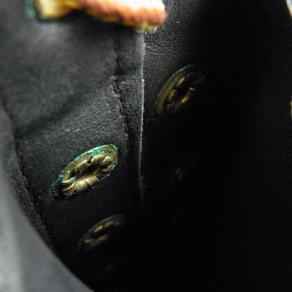 ※金属パーツに緑青、青カビの付着が見受けられ、レザー部分にまで付着しております。※全体に擦れや汚れ、傷が見受けられます。※使用に伴う使用感、汚れ、キズ、スレ、シワなどはございます。中古商材にご不安な方、完璧な商品状態をお求めの方はお控え下さい。 [外側] 表面:キズ、汚れ、スレ |