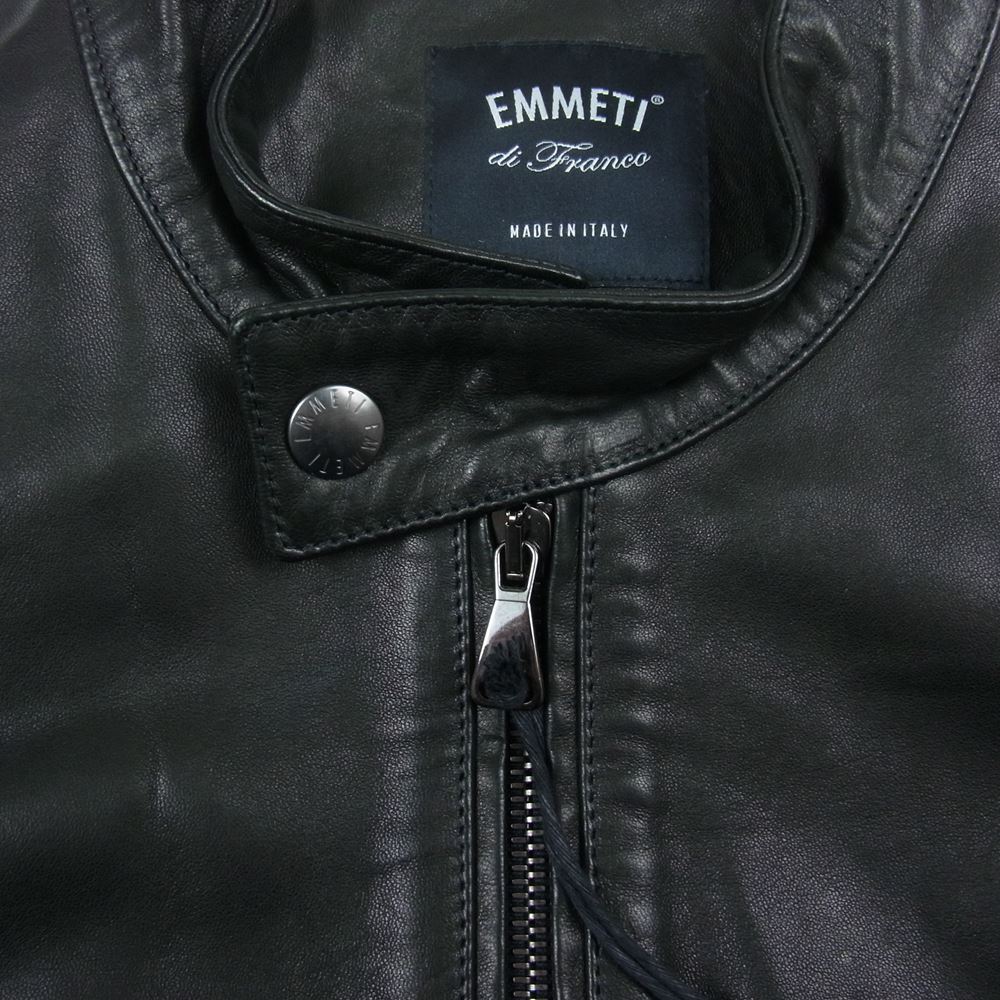 エンメティ JURI 190 NAPPA CERA NERO ナッパ シングル ライダース ジャケット ラムレザー ブラック系 44【美品】【中古】