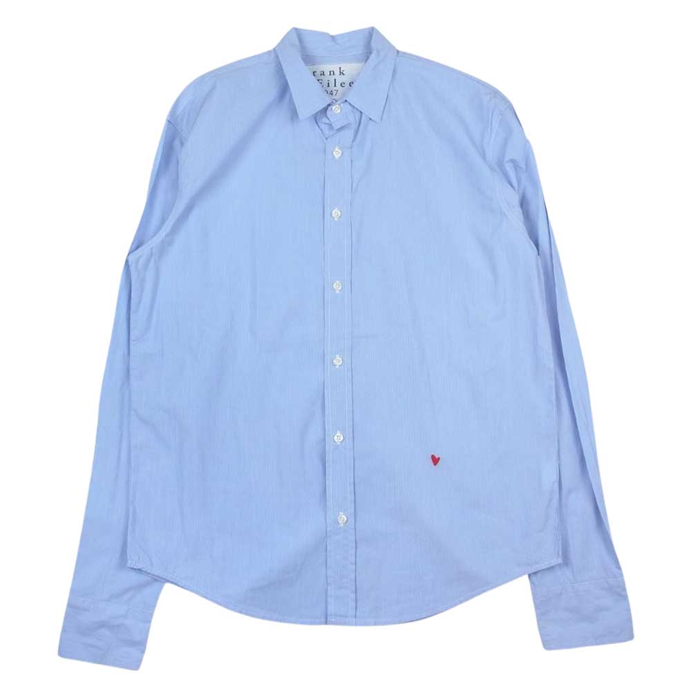 フランクアンドアイリーン ハート刺繍 ストライプ コットン 長袖 シャツ ブルー系 XXS【中古】