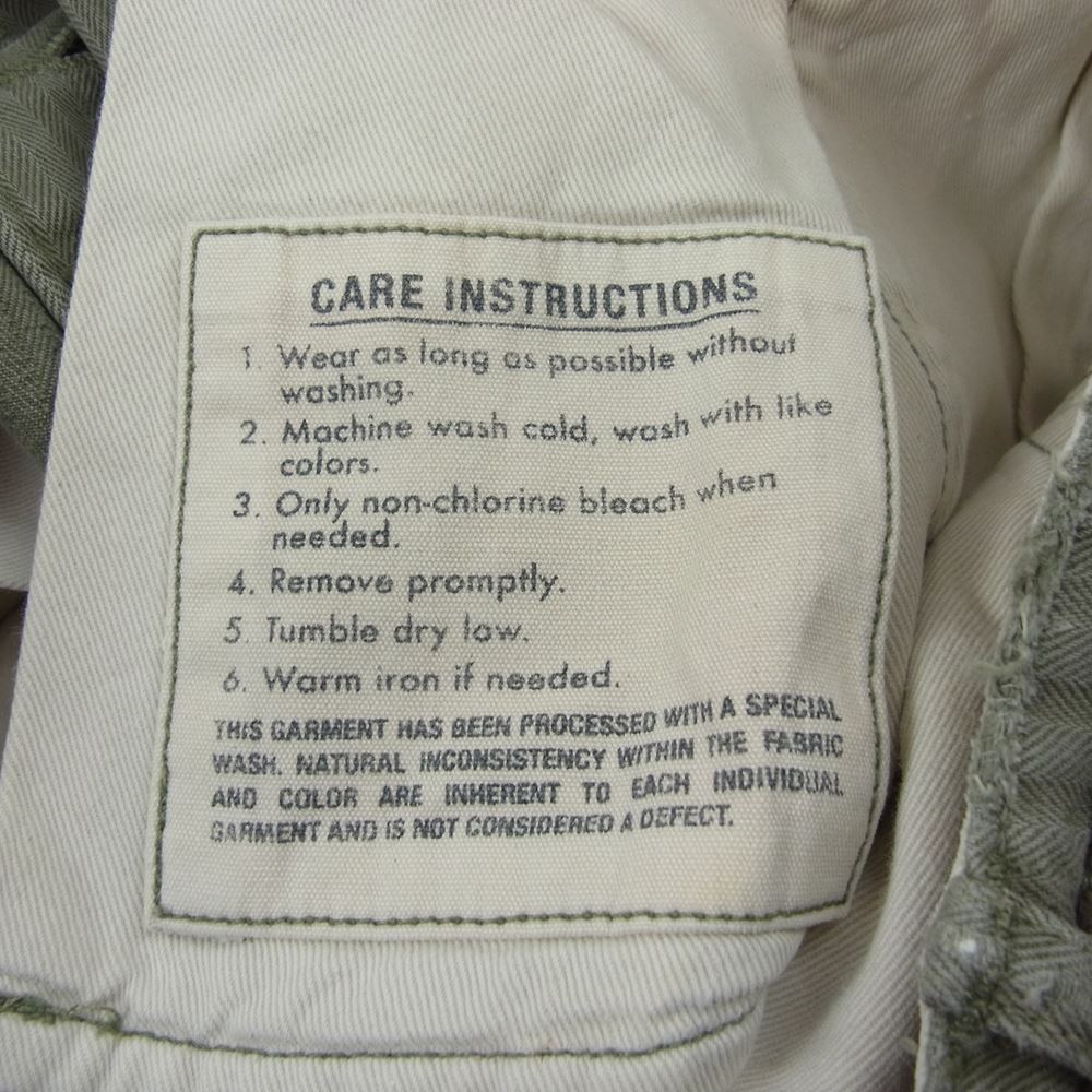 ※元々新品時より加工が施されており意図的な強めの毛羽立ち、生地アタリ、スレ、ほつれ、長年着古した様な褪せた色合いなどクタッとした質感のお品です。こういった商材にご不安な方、完璧な商品状態をお求めの方はお控え下さい。 [外側] 表面:薄汚れ、スレ、シワ |