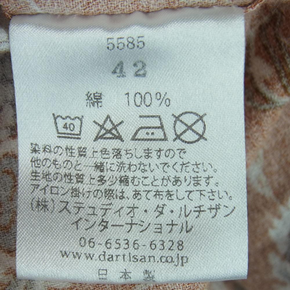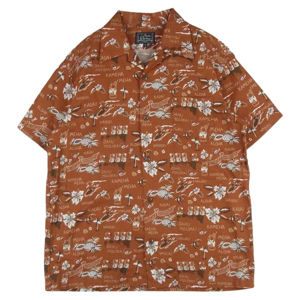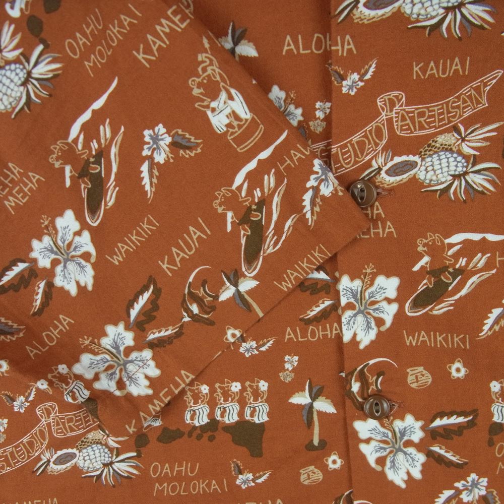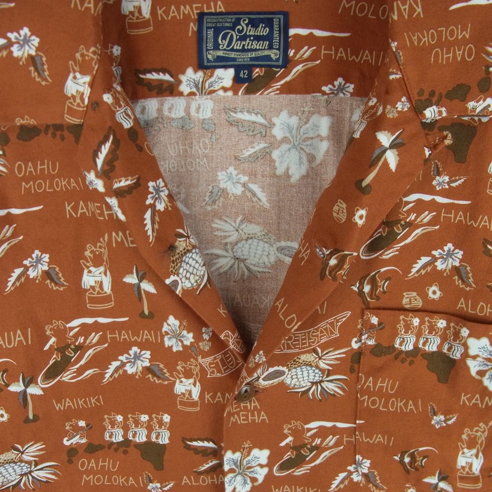 STUDIO D’ARTISAN ステュディオダルチザン 5585 オリジナル 総柄 アロハ 半袖 シャツ コットン 日本製 オレンジ系 42【中古】