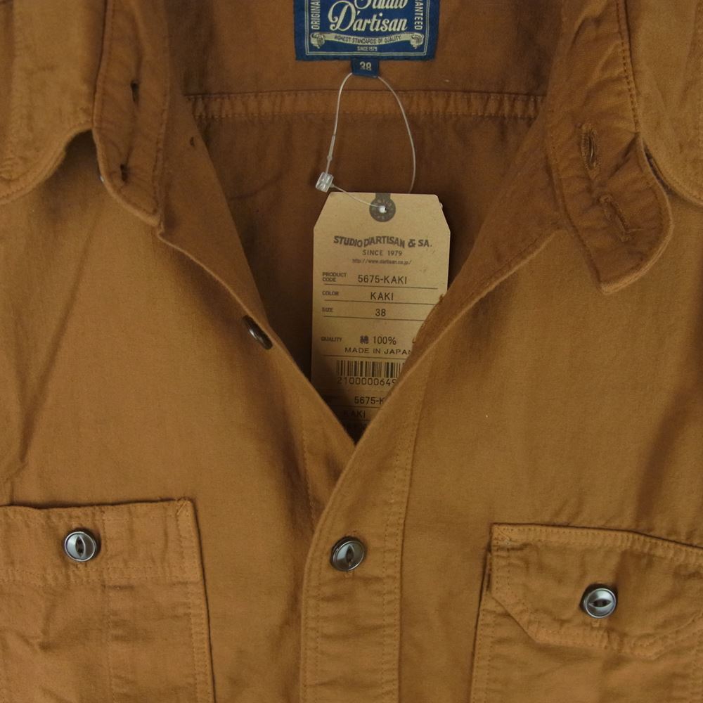 STUDIO D’ARTISAN ステュディオダルチザン 5675-KAKI 柿渋染め ワーク 半袖 シャツ コットン 日本製 ブラウン系 KAKI 38【中古】