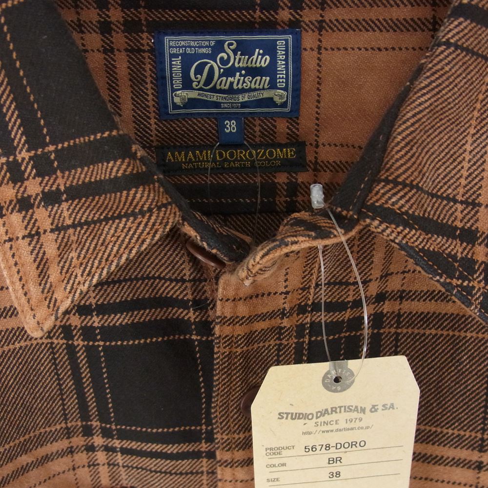 STUDIO D’ARTISAN ステュディオダルチザン 5678-DORO 奄美泥染 チェック ネル シャツ ダーク ブラウン系 38【美品】【中古】