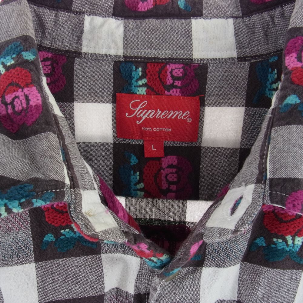Supreme シュプリーム 19SS Rose Buffalo Plaid Shirt ローズプリント バッファロー チェックシャツ マルチカラー系 L【中古】