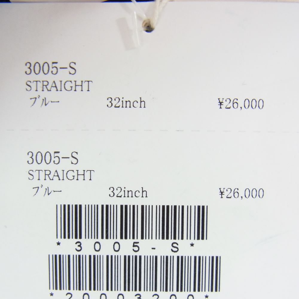 | 商品名 | 3005-S デニム ノンウォッシュ ボタンフライ ストレート パンツ |