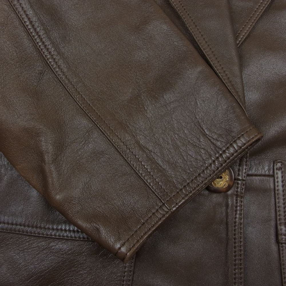 LOEWE ロエベ 4147 アナグラム ロゴ ボタン ラムレザー コート ジャケット ブラウン系 42【中古】