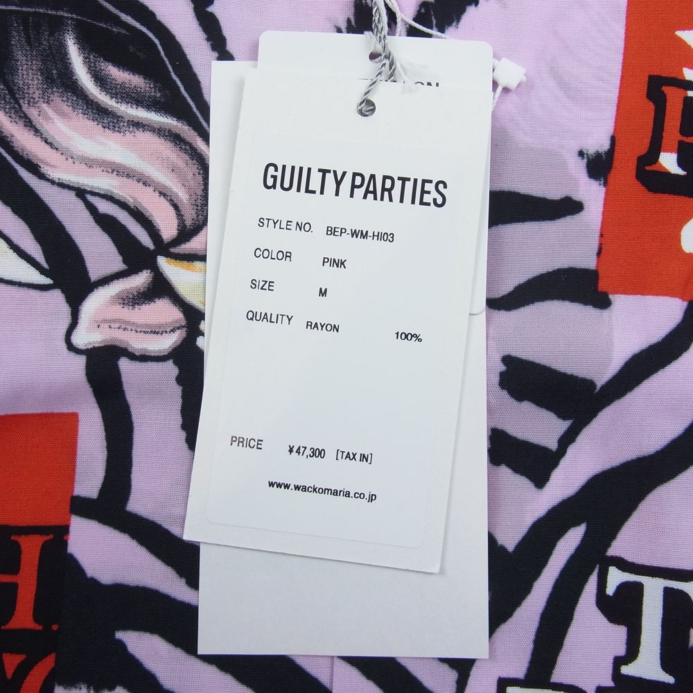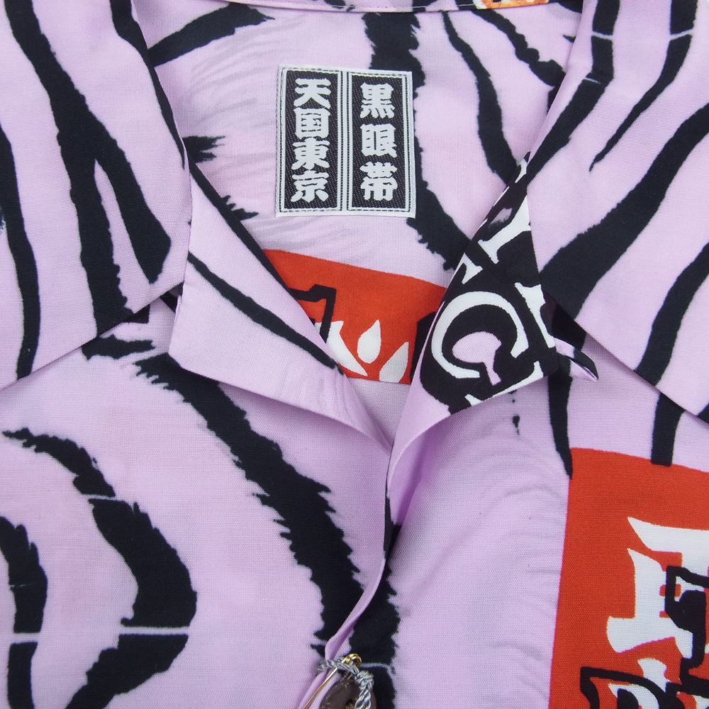 WACKO MARIA ワコマリア 22AW BEP-WM-HI03 BLACK EYE PATCH ブラックアイパッチ TIM LEHI ティムリーハイ HAWAIIAN SHIRT L/S ハワイアン 虎 総柄 レーヨン アロハ 長袖 シャツ ピンク系 M【新古品】【未使用】【中古】