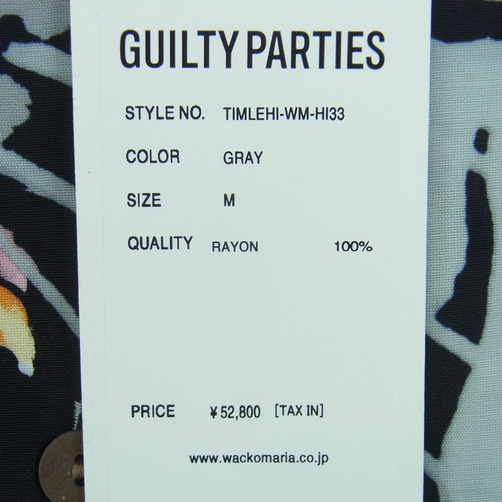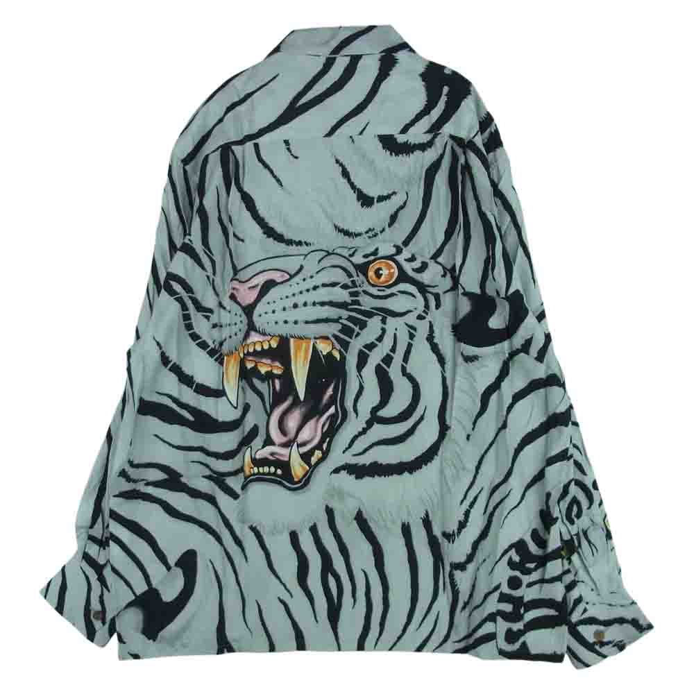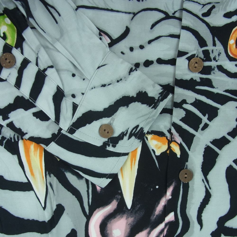 WACKO MARIA ワコマリア 22SS TIMLEHI-WM-HI33 TIM LEHI ティム リーハイ L/S HAWAIIAN SHIRT ハワイアン 虎 総柄 レーヨン アロハ 長袖 シャツ グレー系 M【新古品】【未使用】【中古】