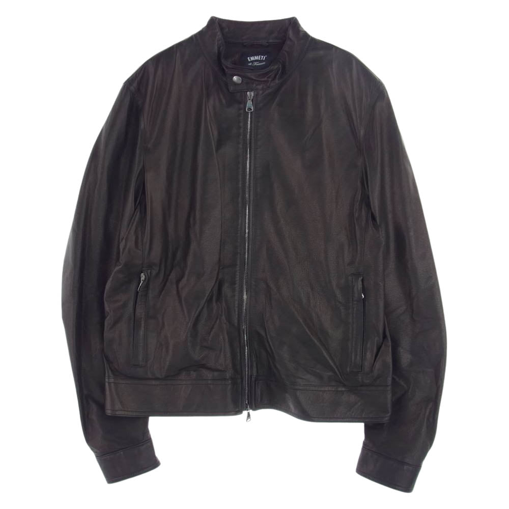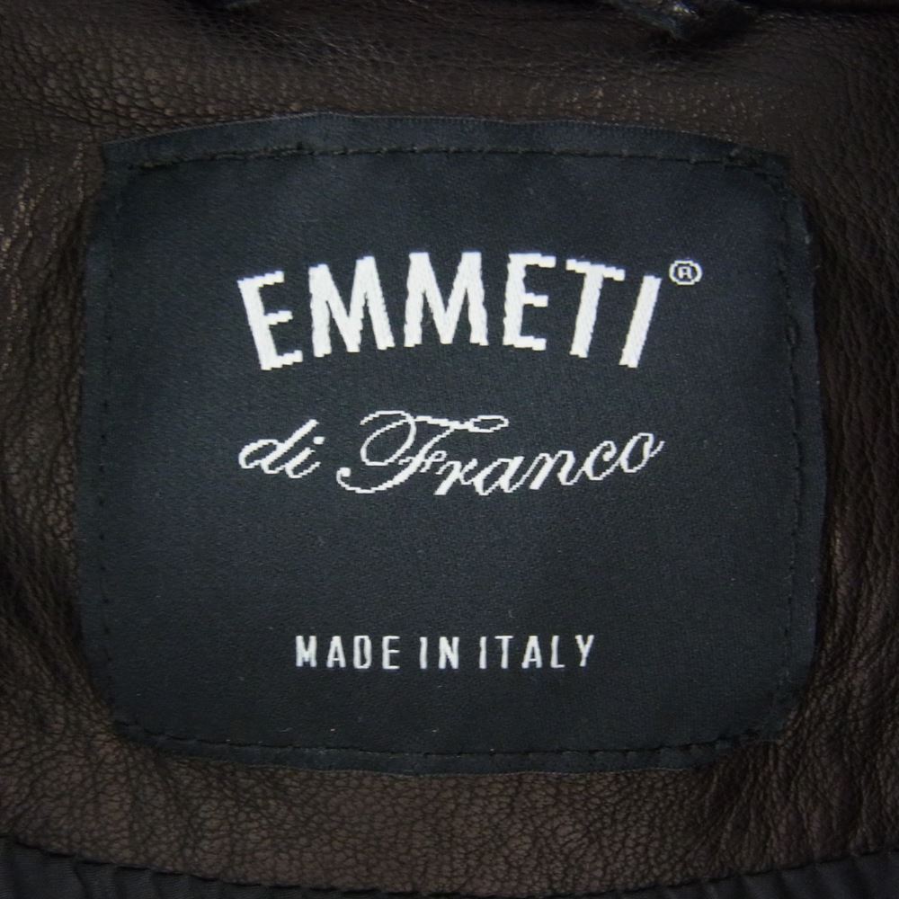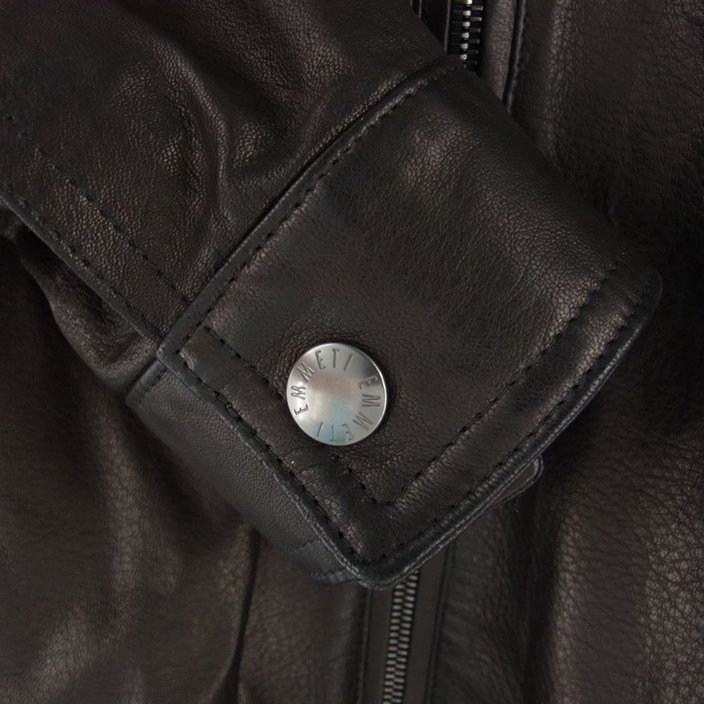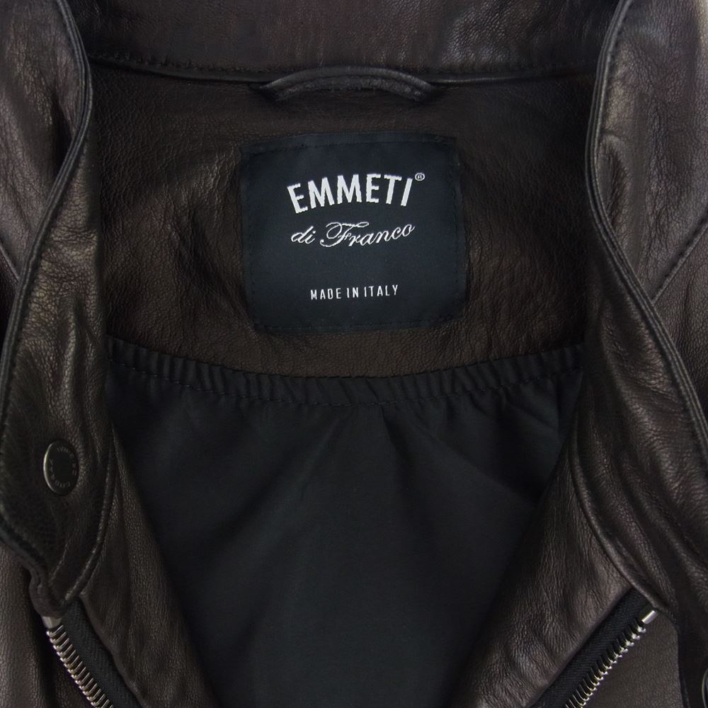 エンメティ GIAPPONE-078 イタリア製 JURI ユリ ラムスキン レザー シングルライダース ジャケット ブラック系 52【極上美品】【中古】