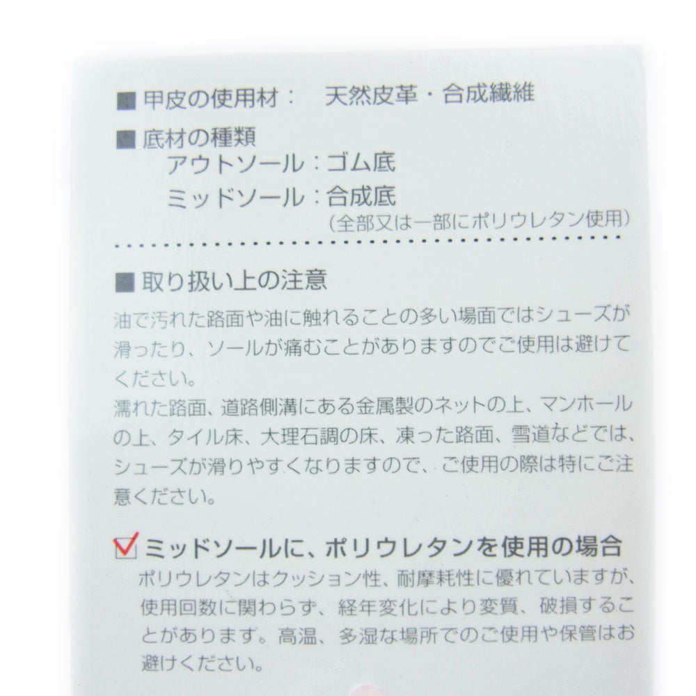| 素材 | /天然皮革・合成繊維・ゴム底・合成底/生産国アメリカ |