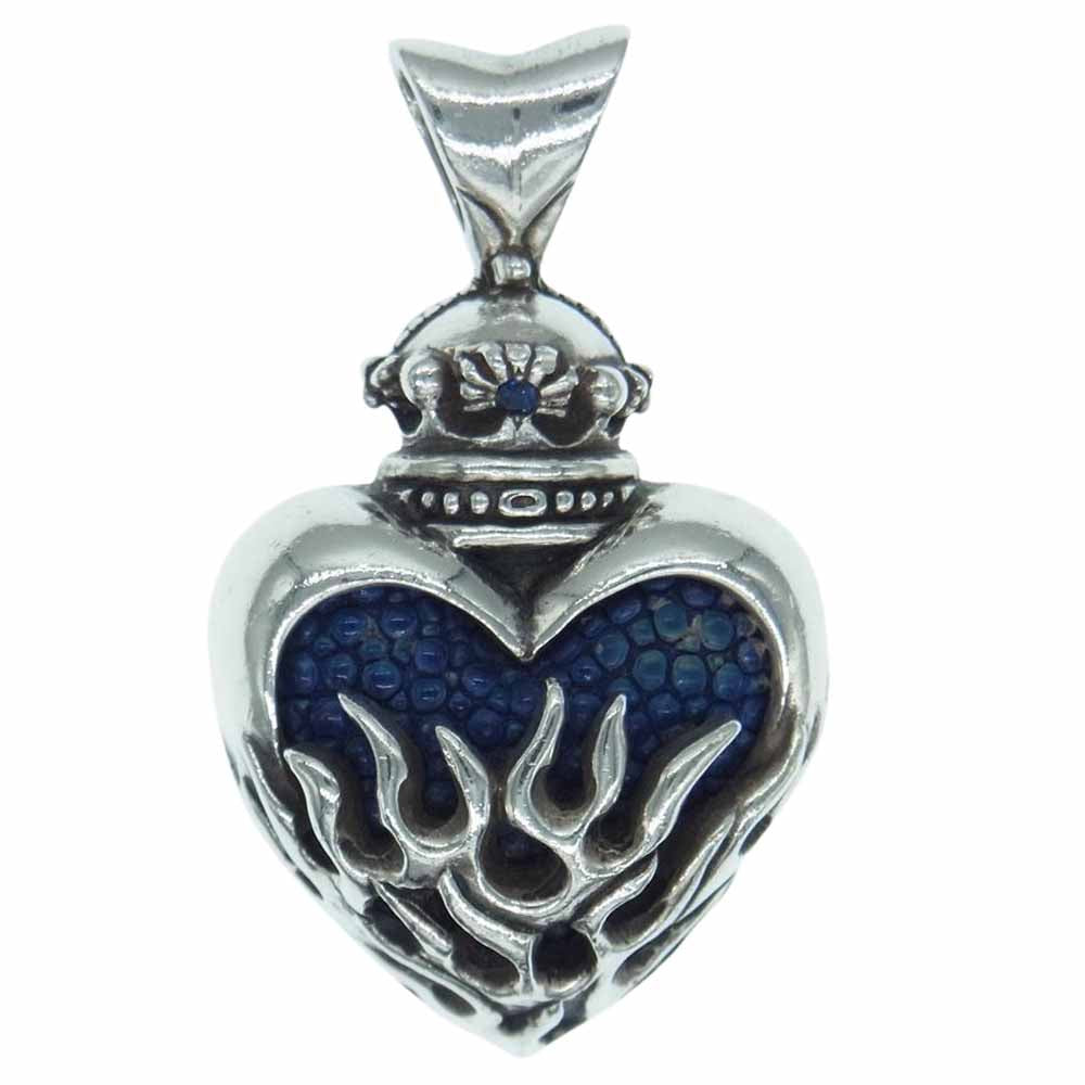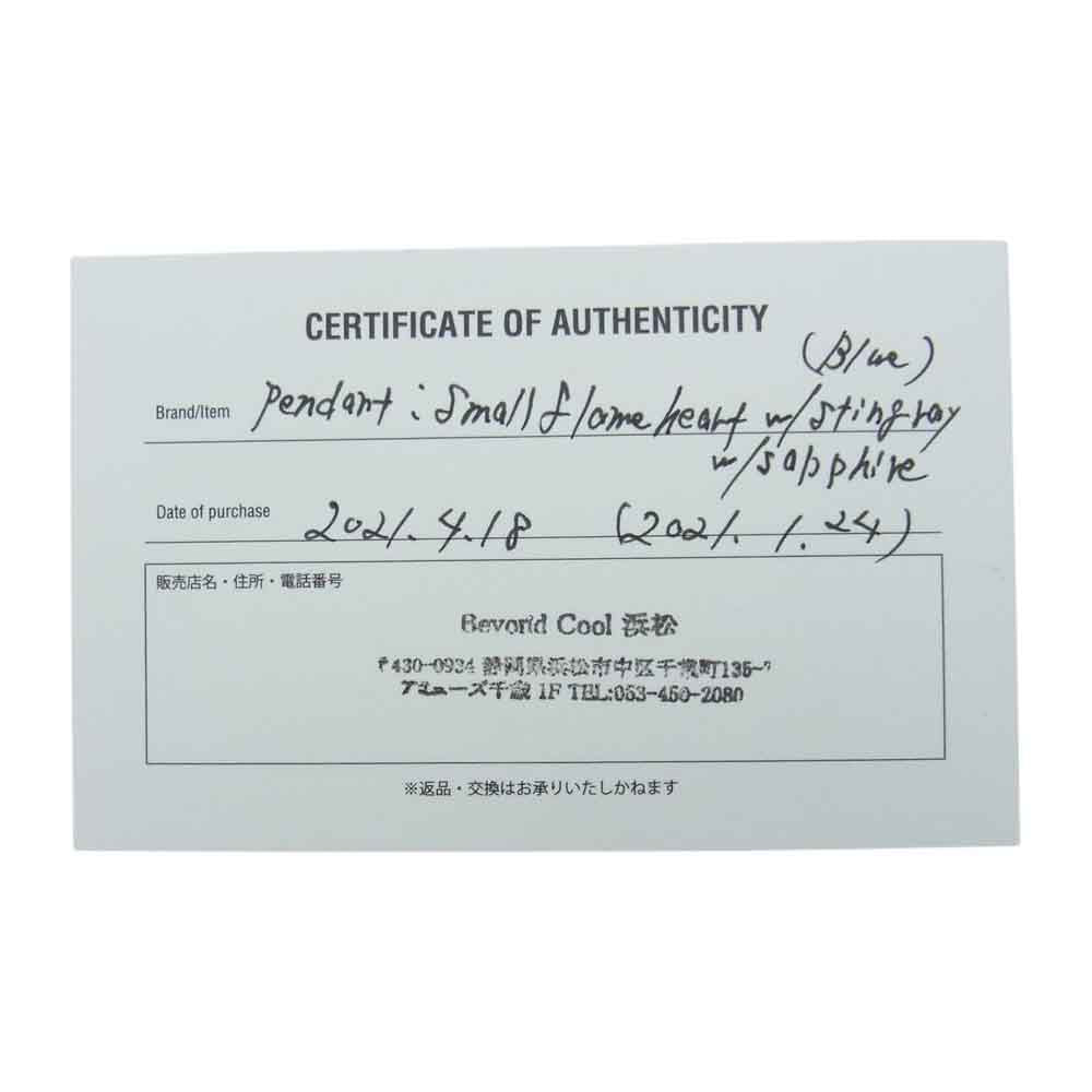 | 商品名 | Small flame heart w/stingray w/sapphire スモール フレーム ハート ペンダント スティングレイ レザー ネックレス |