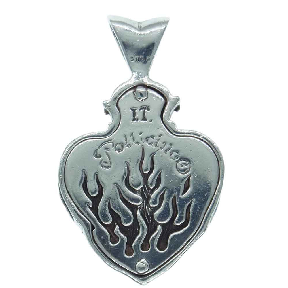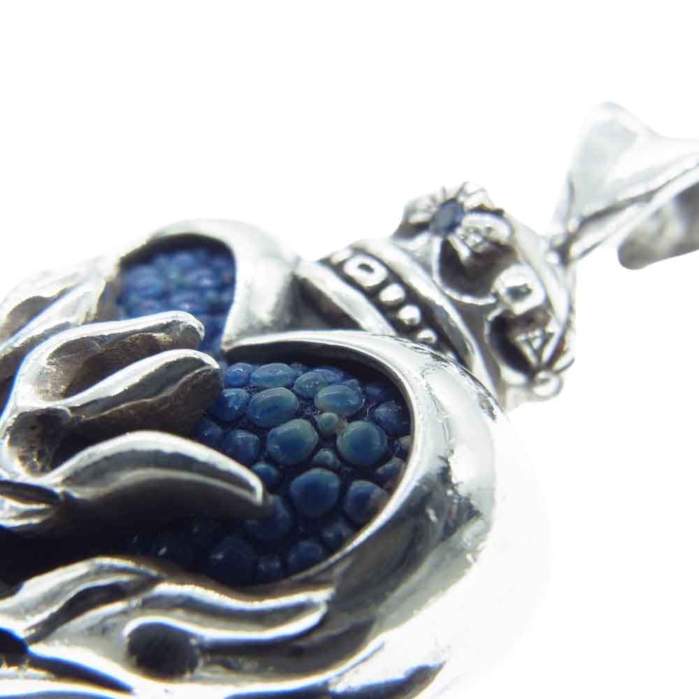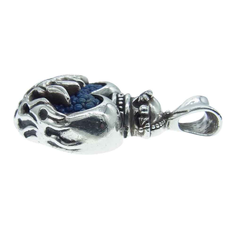 レザーズアンドトレジャーズ Small flame heart w/stingray w/sapphire スモール フレーム ハート ペンダント スティングレイ レザー ネックレス シルバー系 ブルー系【中古】