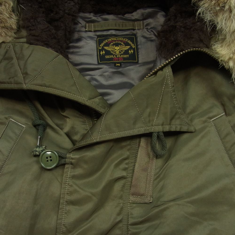 スカルフライト RIDERS N-3B コヨーテファー フード ミリタリー ジャケット カーキ系 36【中古】