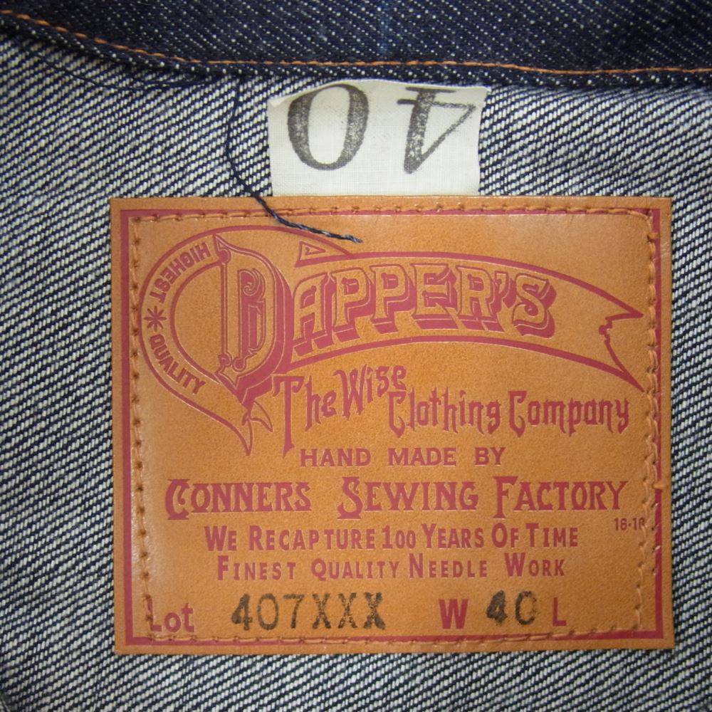 ダッパーズ 407XXX 2ND One Piece Of Rock セカンド コナーズ ソーイング ファクトリー デニム ジャケット インディゴブルー系 40【新古品】【未使用】【中古】