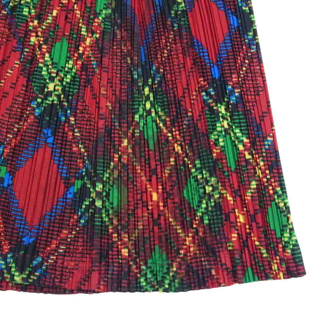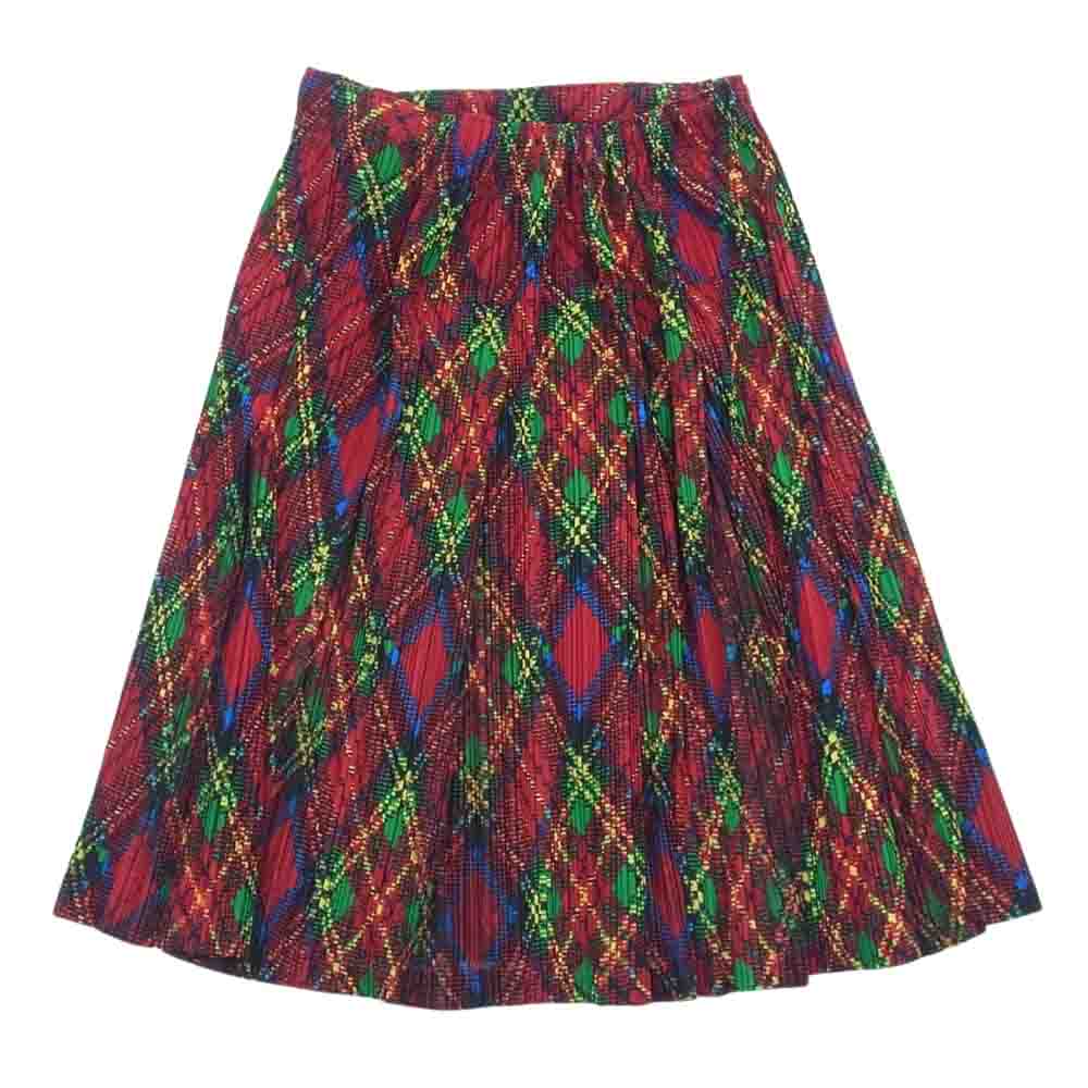 PLEATS PLEASE プリーツプリーズ イッセイミヤケ PP73-JG667 プリーツ加工 アーガイル タータンチェック 総柄 プリーツスカート レッド系 3【美品】【中古】