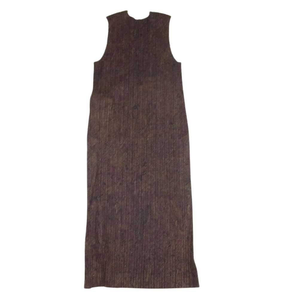 PLEATS PLEASE プリーツプリーズ イッセイミヤケ PP91-JH145 プリーツ加工 サイドスリットボタン 枯葉 総柄 ノースリーブ ワンピース ドレス ブラウン系【美品】【中古】