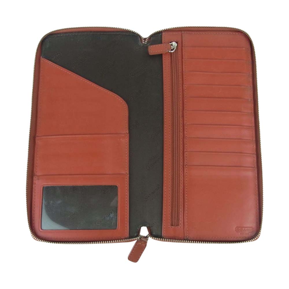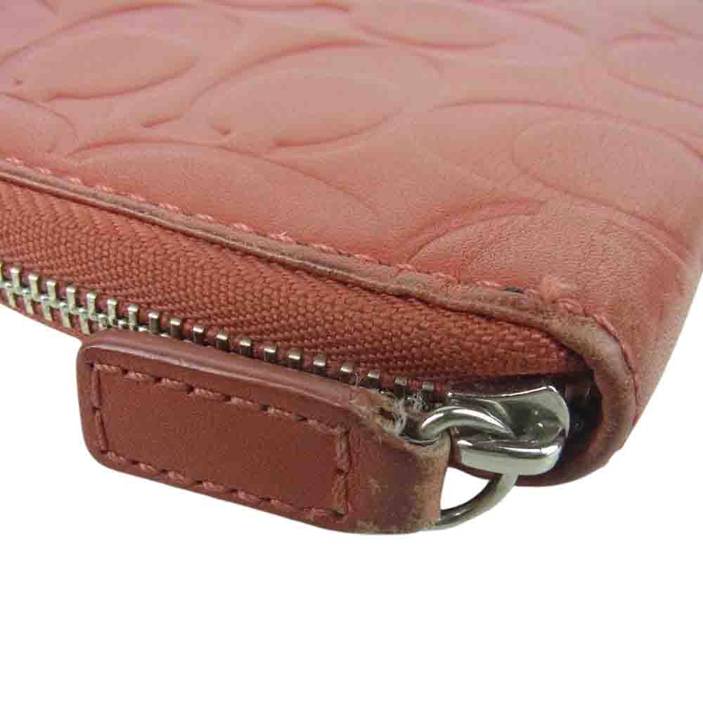 COACH コーチ レザー シグネチャー ロング ウォレット 財布 オレンジ系 朱色系【中古】