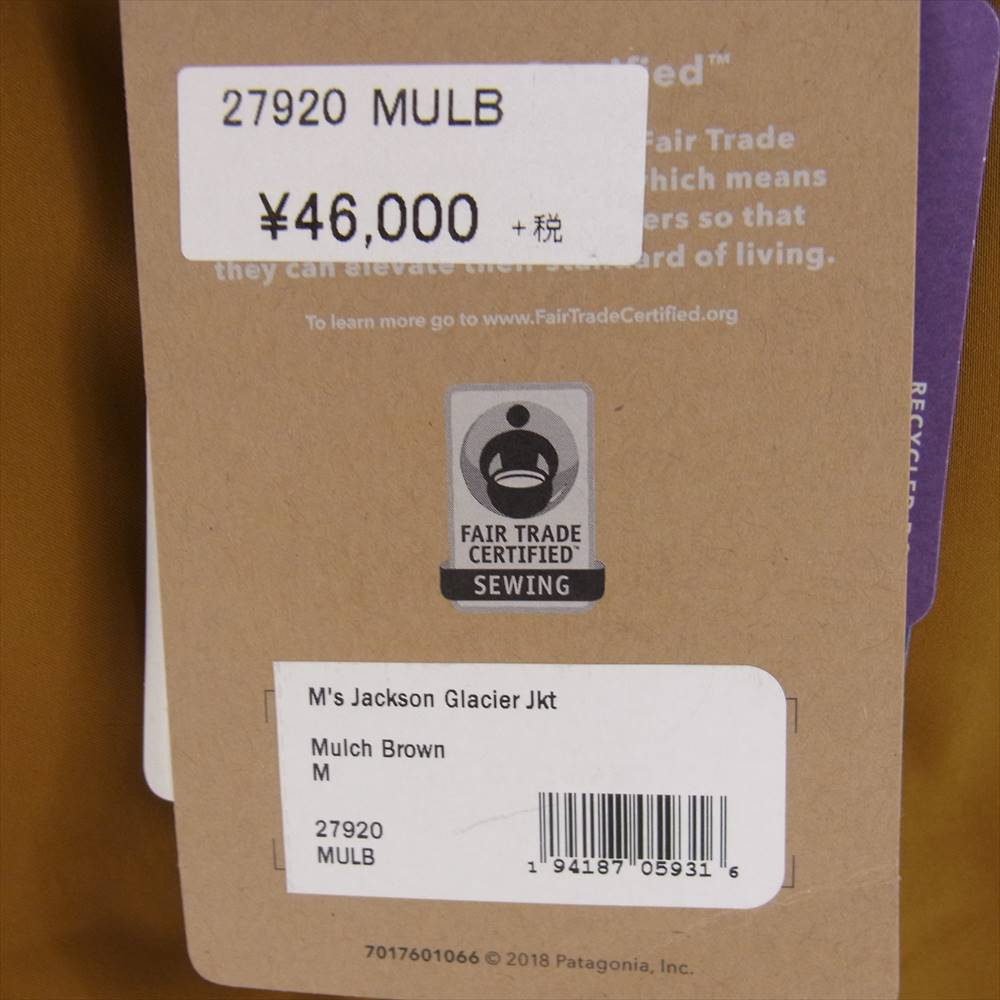 patagonia パタゴニア 20AW 27920 Jackson Glacier Jacket ジャクソングレイシャー ダウン ジャケット ライトブラウン系 M【新古品】【未使用】【中古】