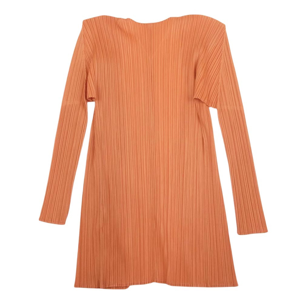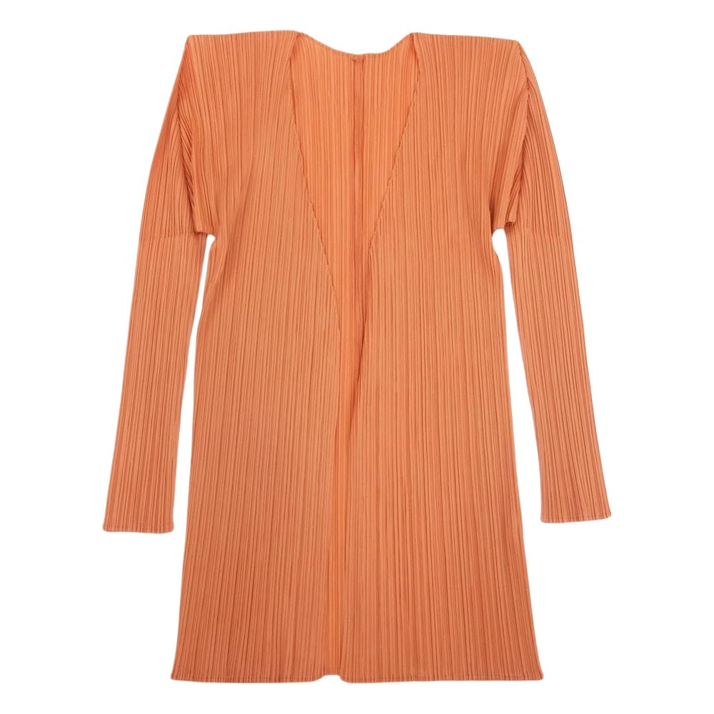 PLEATS PLEASE プリーツプリーズ イッセイミヤケ PP61-J0207 プリーツ加工 細プリーツ Vネック ボタンレス ロング カーディガン オレンジ系 4【中古】
