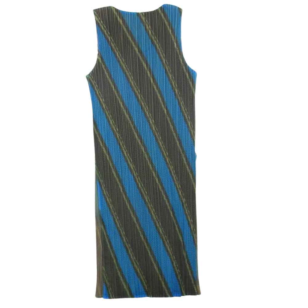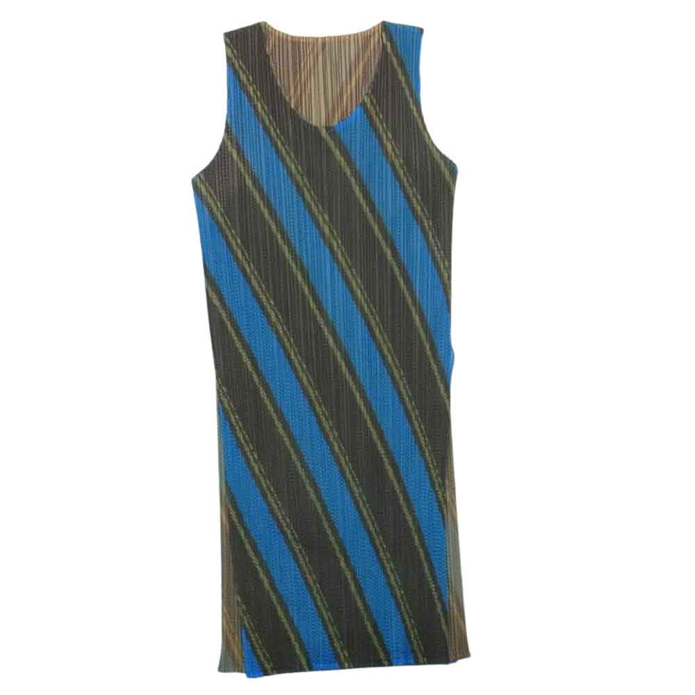 PLEATS PLEASE プリーツプリーズ イッセイミヤケ PP64-JK322 プリーツ加工 レジメンタルストライプ メッシュ ノースリーブ ワンピース ブルー系 5【中古】