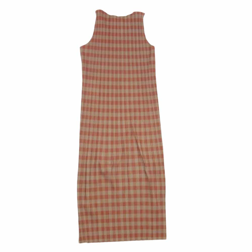 PLEATS PLEASE プリーツプリーズ イッセイミヤケ PP72-JH16 プリーツ加工 チェック ノースリーブ スリット ロング ワンピース ベージュ オレンジ系 2【中古】