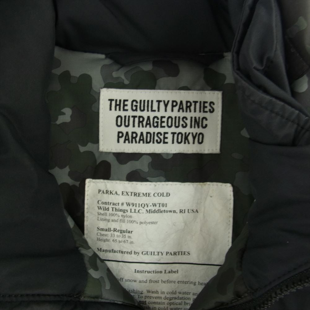 WACKO MARIA ワコマリア 16AW W911QY-WT01 × WILD THINGS HAPPY JACKET フード付き カモフラ プリマロフト ナイロン 中綿ジャケット ブラック系 S【中古】