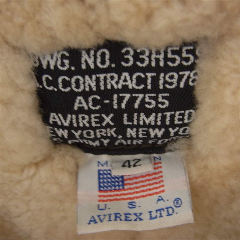 AVIREX アヴィレックス USA製 B-3 シープスキン ムートン ボア フライト ジャケット ブラウン系 42【中古】