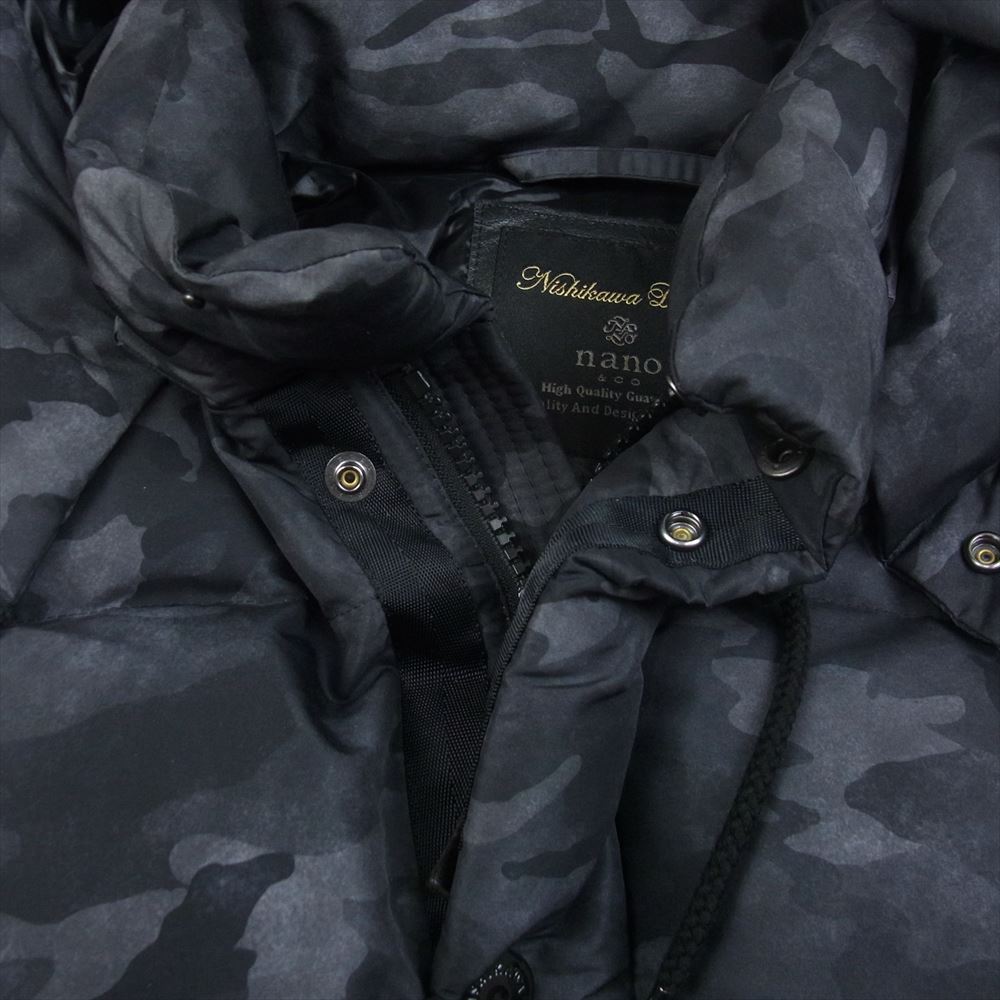nano universe ナノユニバース 西川ダウン ジャケット カモフラ 迷彩柄 ブラック系 M【中古】