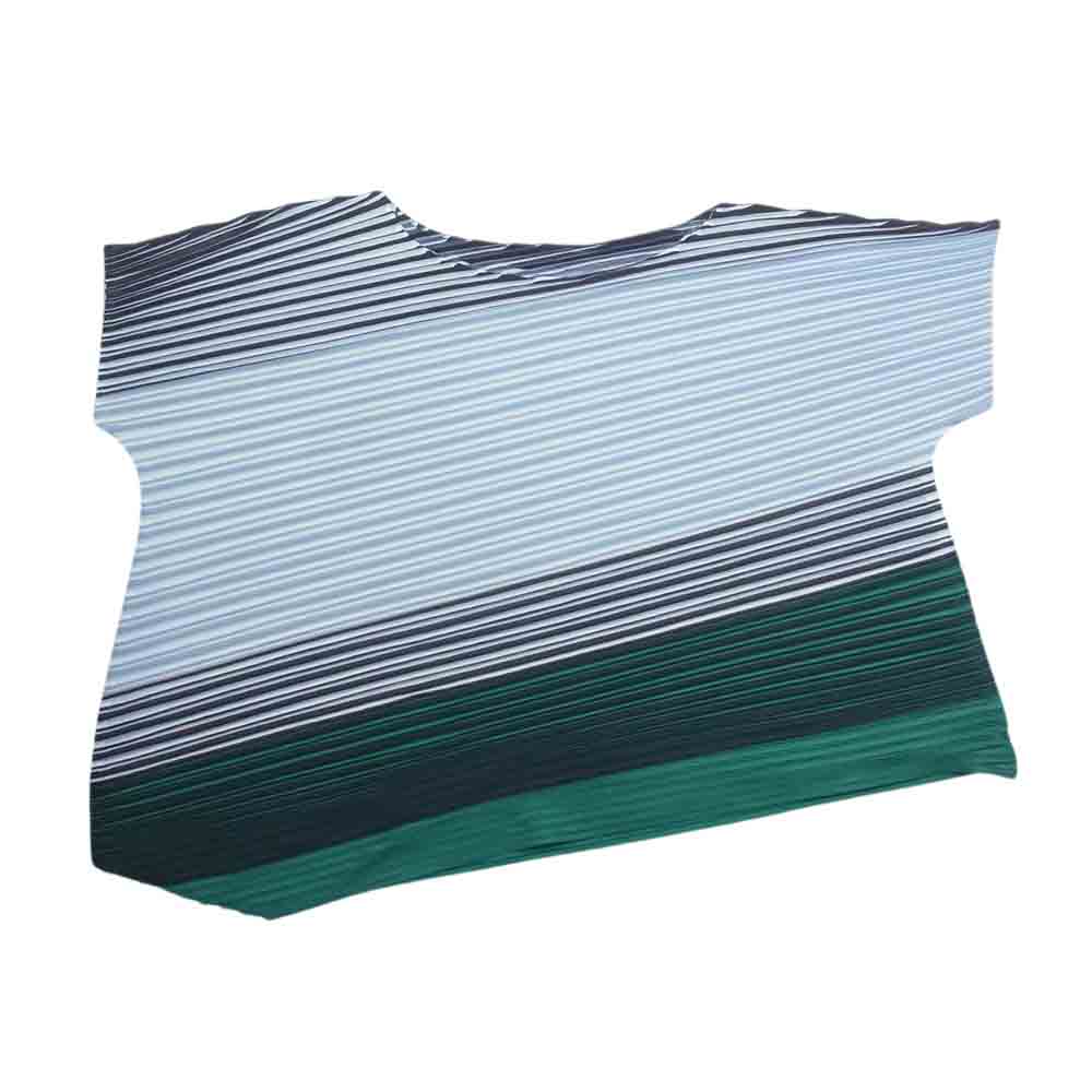 PLEATS PLEASE プリーツプリーズ イッセイミヤケ PP71-JH755 プリーツ加工 アシンメトリー フレンチスリーブ カットソー グリーン系 3【中古】