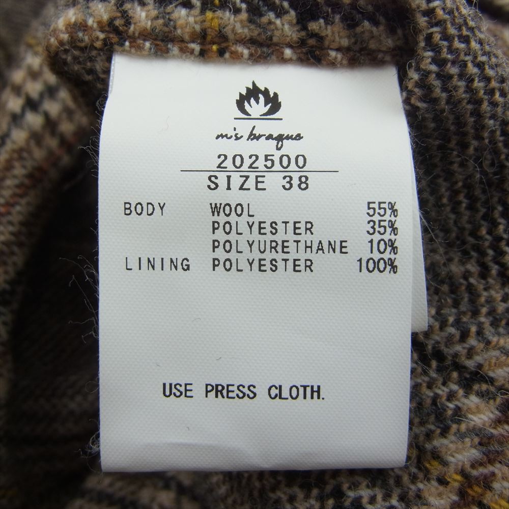 エムズブラック 202500 ウール混 1B チェック シングル テーラードジャケット ブラウン系 38【中古】