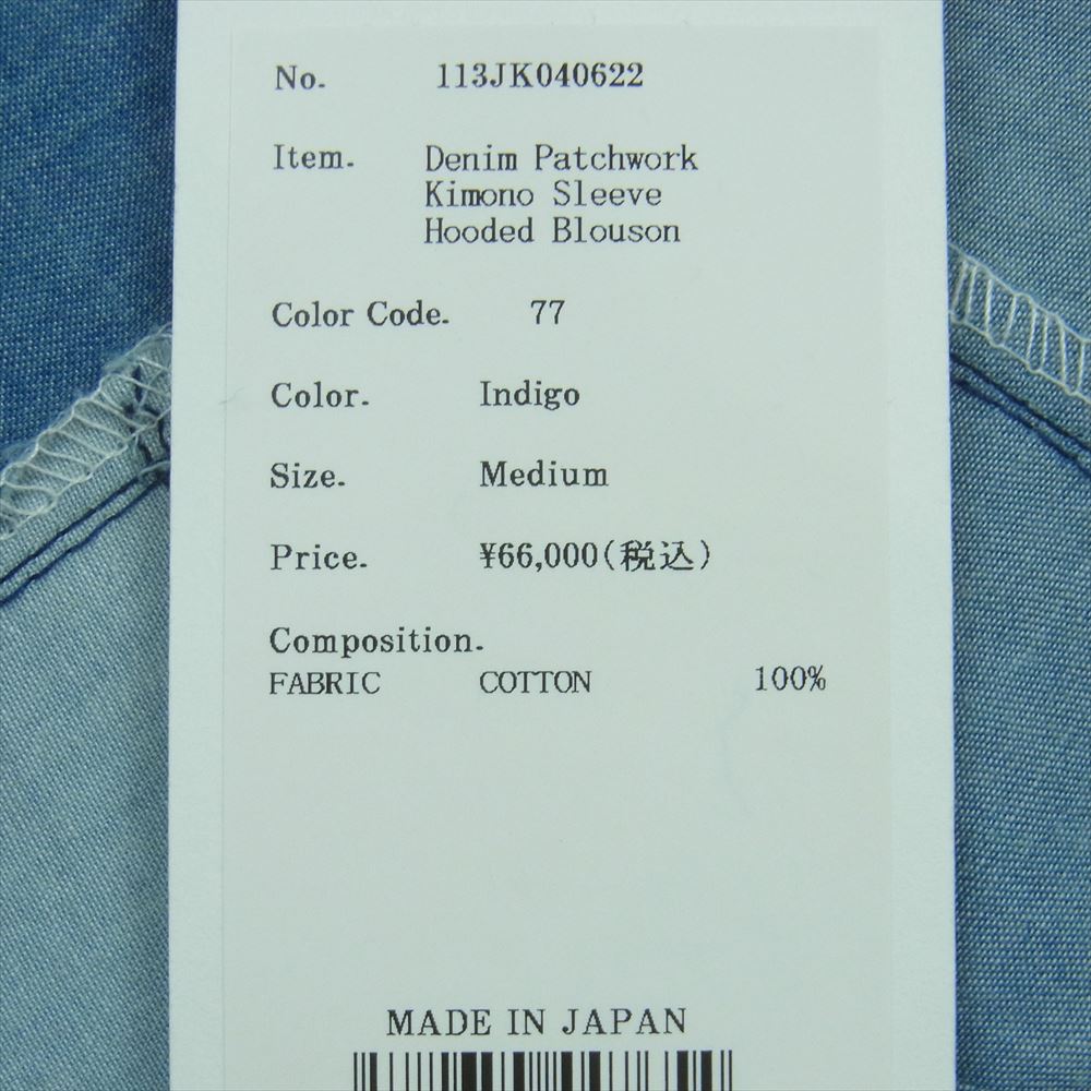 クオン 113JK040622 Denim Patchwork Kimono Sleeve Hooded Blouson デニム パッチワーク ジャケット パーカー インディゴブルー系 M【新古品】【未使用】【中古】
