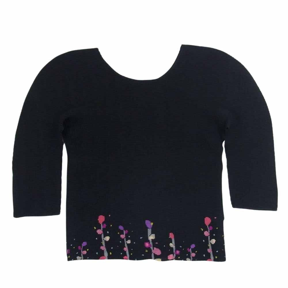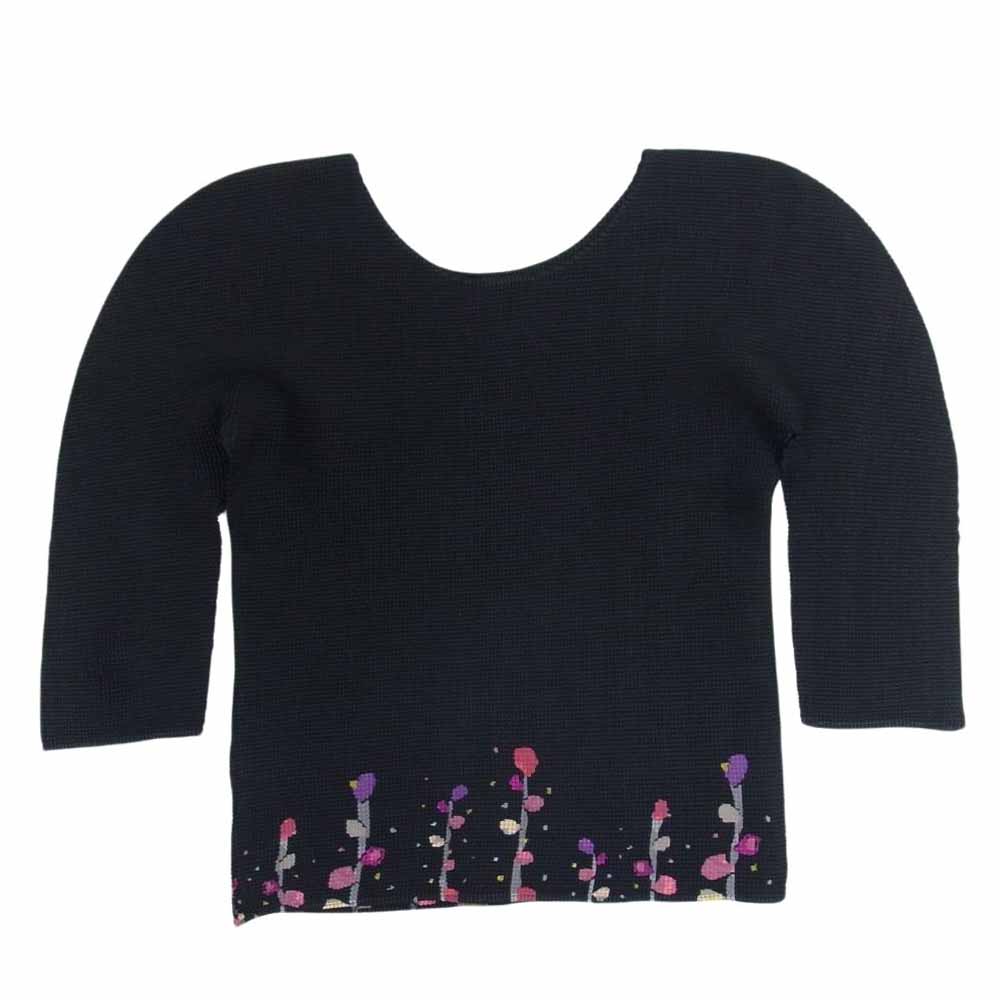 ISSEY MIYAKE イッセイミヤケ me ミー MI41FJ124 ボックスプリーツ 蕾 つぼみ プリント カットソー 七分袖 ブラック系 サイズ表記無【美品】【中古】