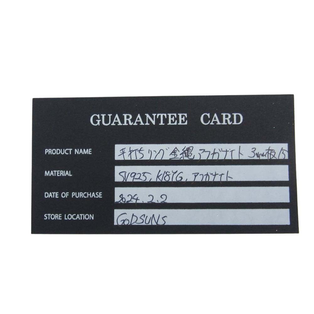 | 商品名 | ギャランティ付属 平打ちリング 金縄 アフガナイト 3mm SV925 K18YG |