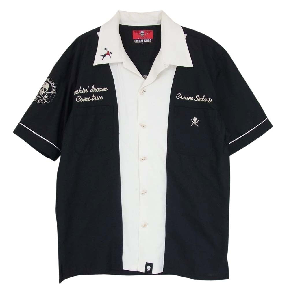 CREAM SODA クリームソーダ Classics スカル刺繍 半袖 レーヨン ボーリング オープンカラー シャツ ブラック系 L【中古】
