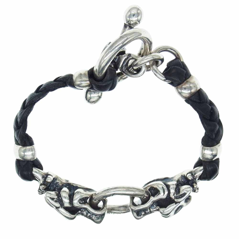 TRAVIS WALKER トラヴィスワーカー 販売証明書カード付き ガーゴイル Tバー レザー ブレスレット ブラック系【中古】