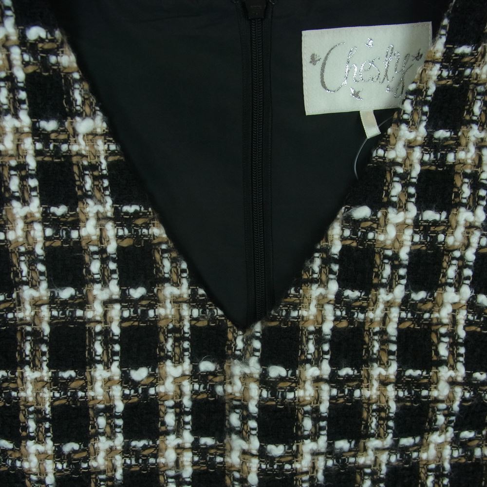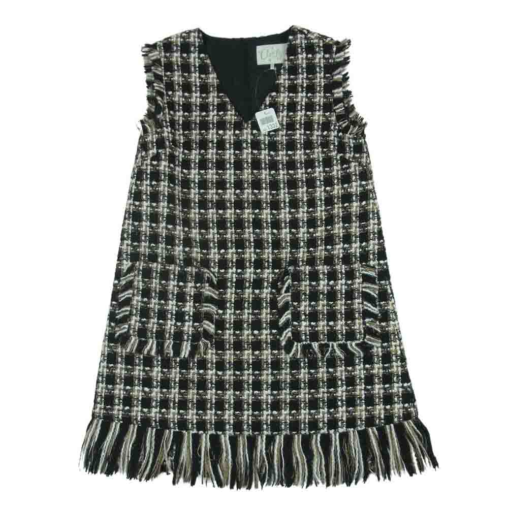 チェスティ 0W517 ツイード フリンジ ノースリーブ ワンピース ブラック系 ブラウン系 ホワイト系 1【中古】