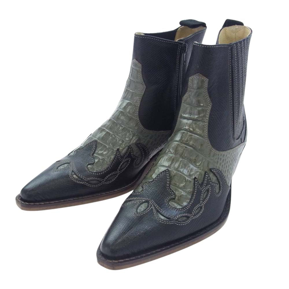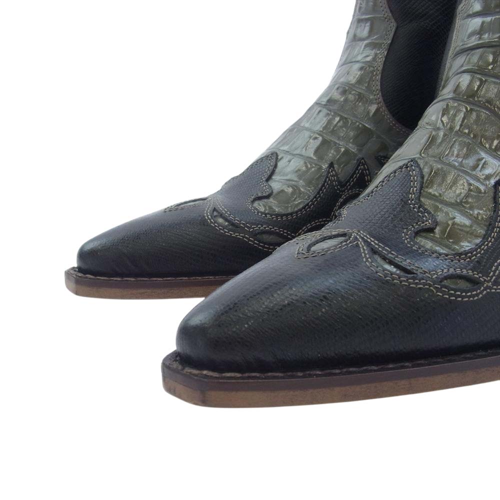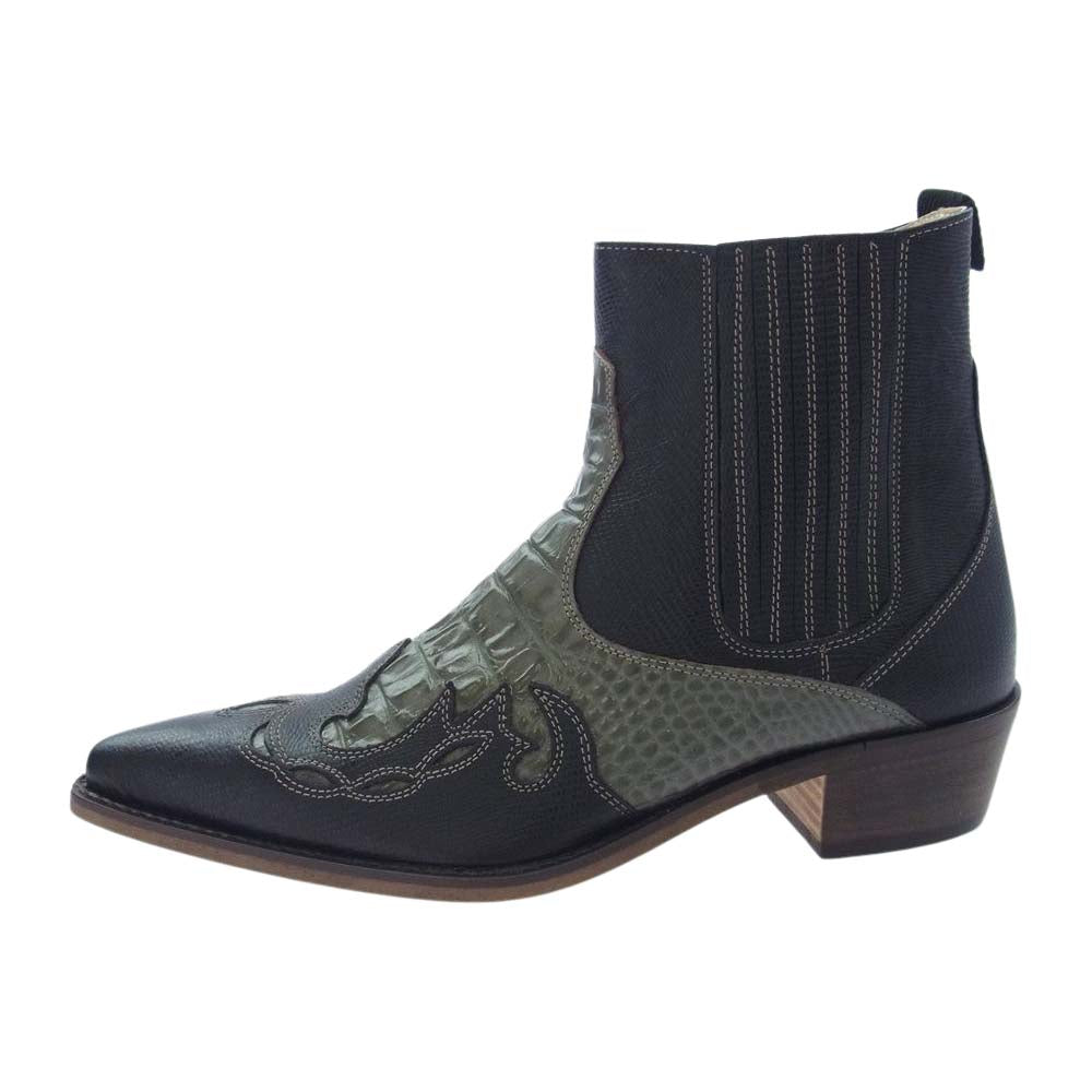 トラッカーズ ジップ アップ レザー クロコ 型押し ウエスタン ブーツ ブラック系 8【中古】