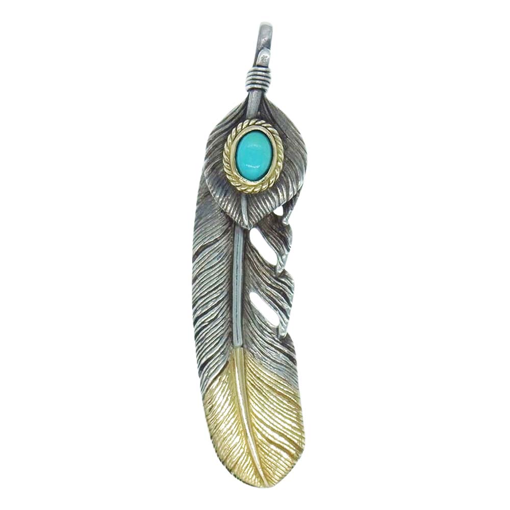 | 商品名 | ハートSVフェザー 剣先K18 金縄ターコイズ Lサイズ 先金 ペンダントトップ |