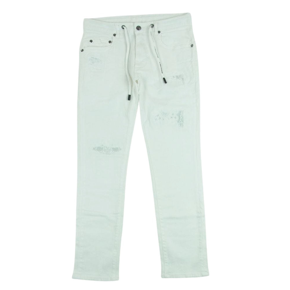 1piu1uguale3 ウノピュウノウグァーレトレ RELAX リラックス ダメージ加工 バンダナ柄 デニム パンツ ホワイト系 L【美品】【中古】