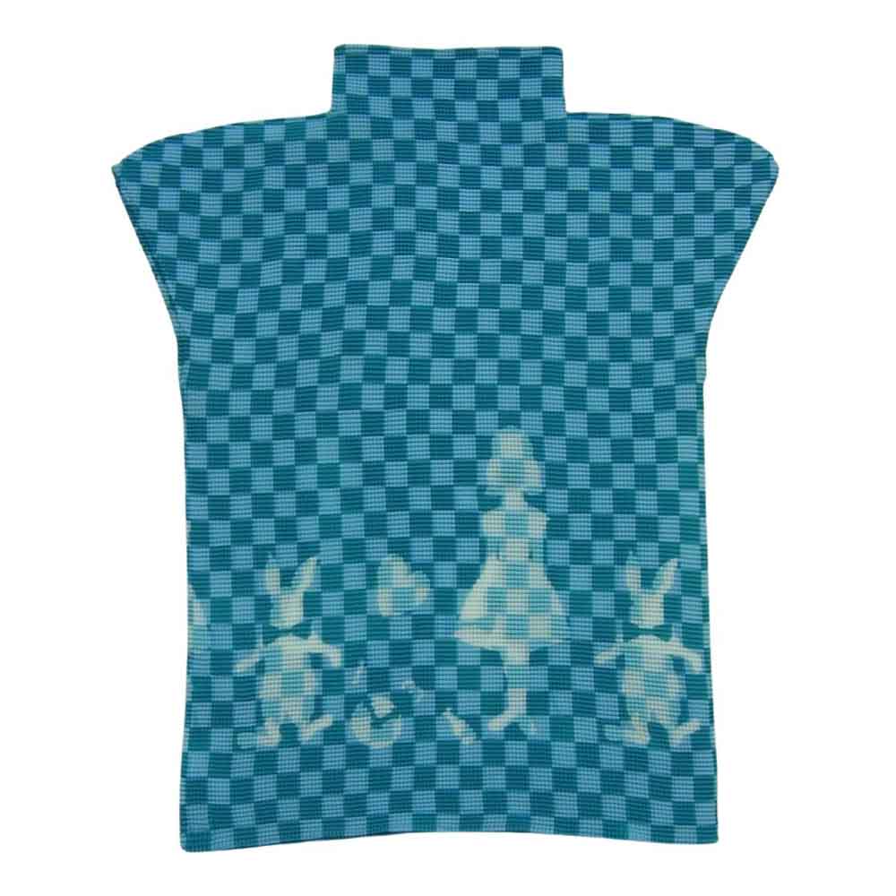 ISSEY MIYAKE イッセイミヤケ mi71fk323 Me ミー 不思議の国のアリス 市松総柄 ボックスプリーツ加工 ボトルネック フレンチ スリーブ カットソー ライトブルー系【中古】