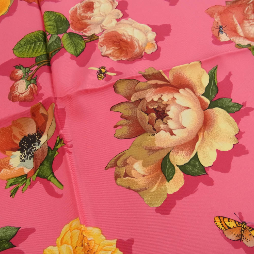 | 商品名 | シルク100% OLD オールド BEE 蜂 バタフライ 花柄 フラワー スカーフ ピンク |