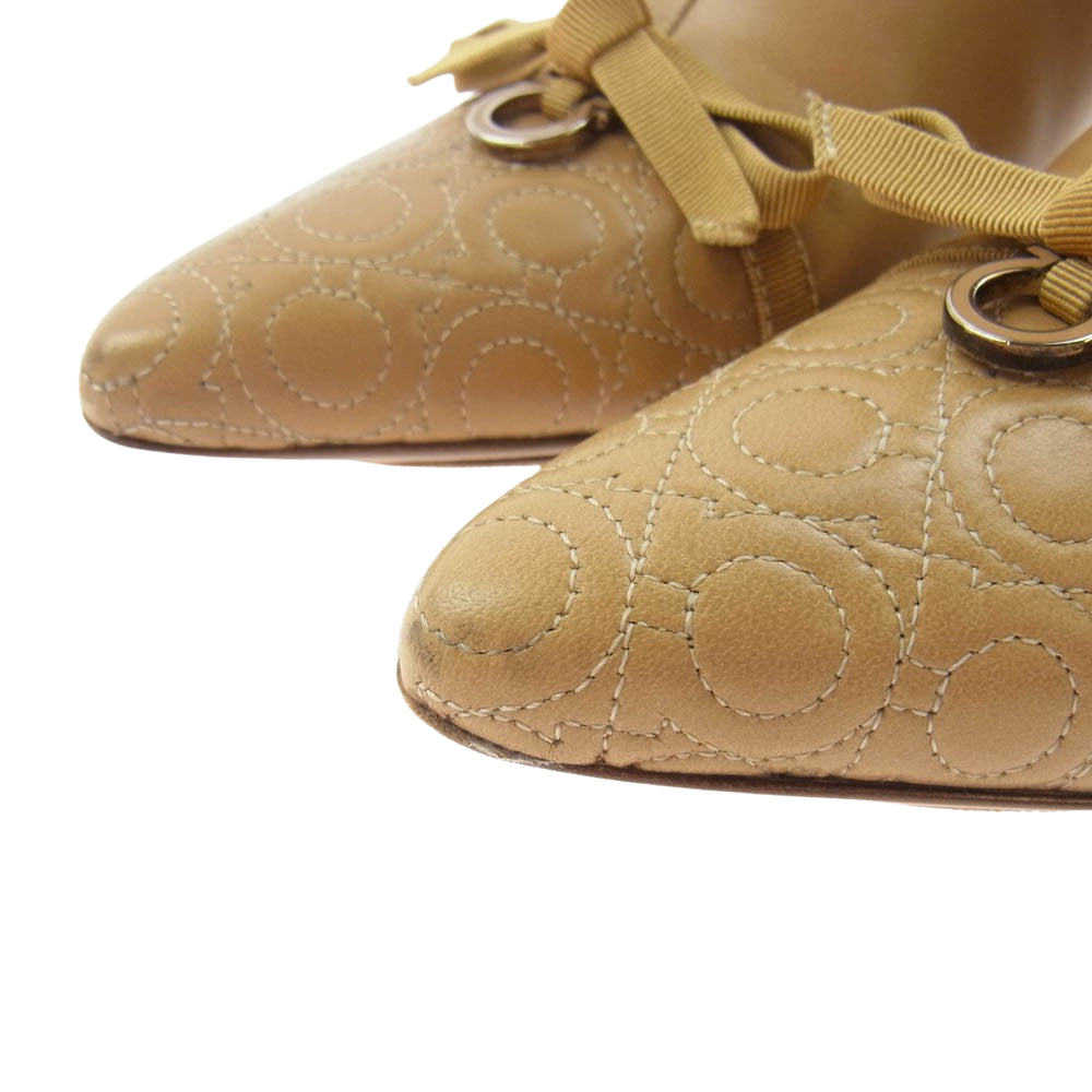 Salvatore Ferragamo サルヴァトーレフェラガモ BUENA ガンチーニ サイドジップ ヒールブーツ ベージュ系 6【中古】