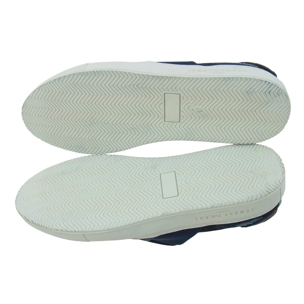 1piu1uguale3 ウノピュウノウグァーレトレ PHILIPPE MODEL フィリップモデル別注 TROPEZ DENIM USED加工 デニム スリッポン シューズ ダークネイビー系 42【美品】【中古】
