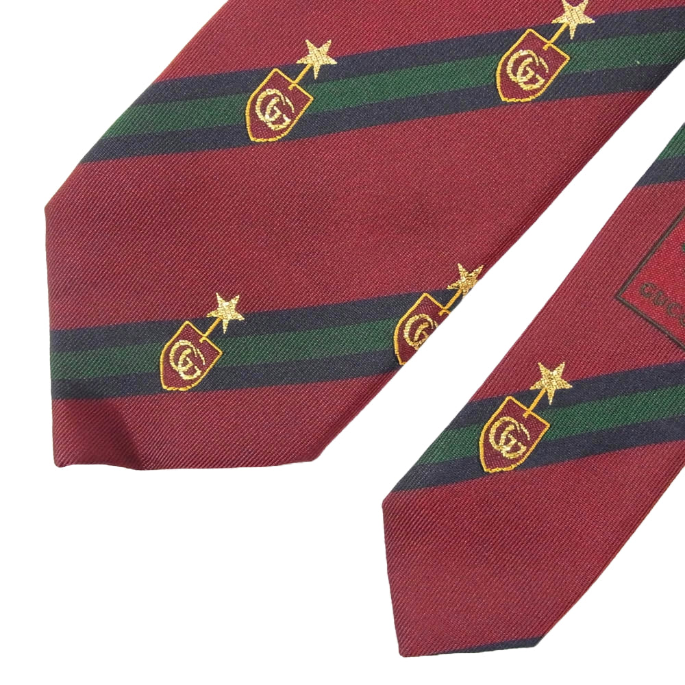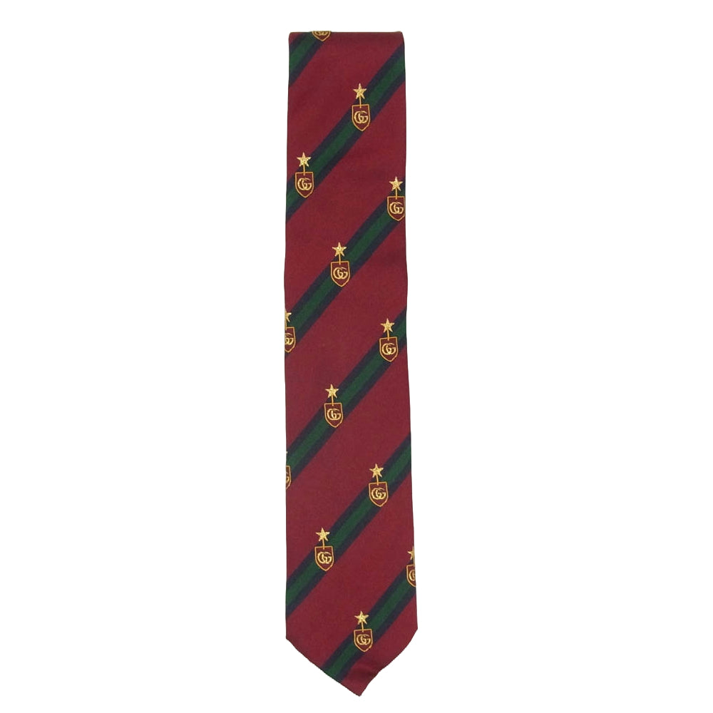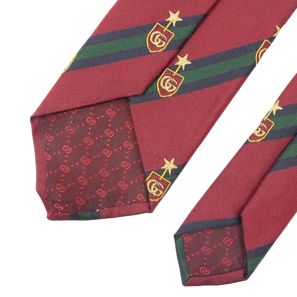 GUCCI グッチ 521716 4B744 スター GG エンブレム 刺繍 ネクタイ エンジ系【美品】【中古】